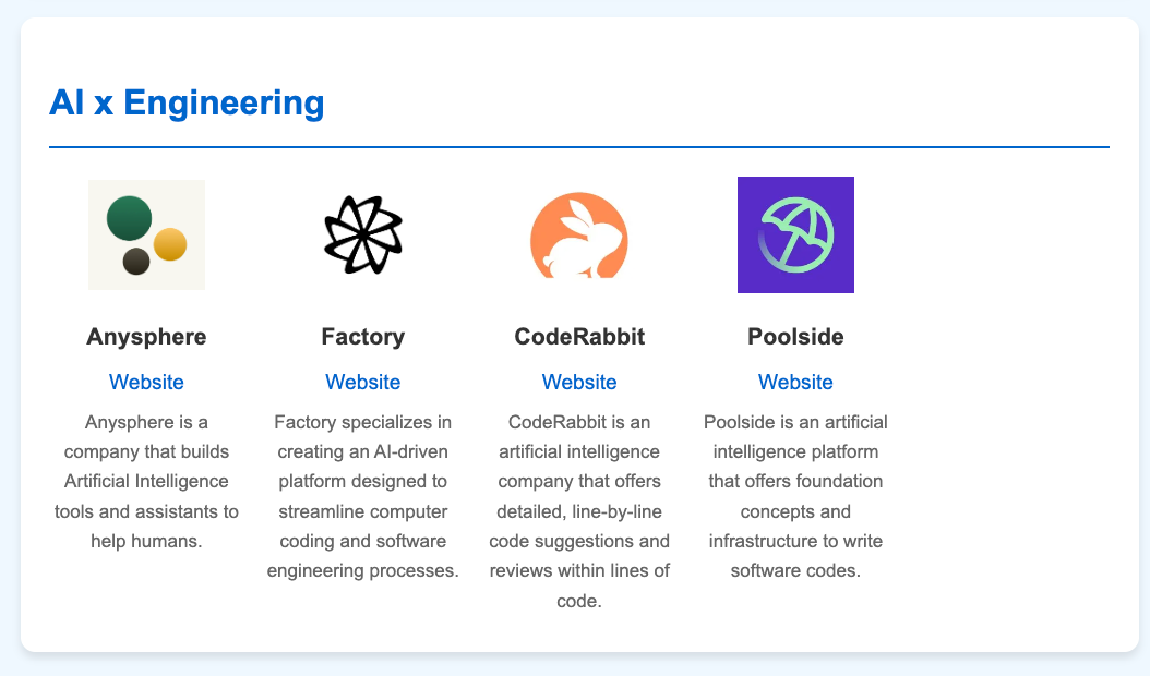 Code generation (Anywhere — creators of Cursor, Factory, Poolside)