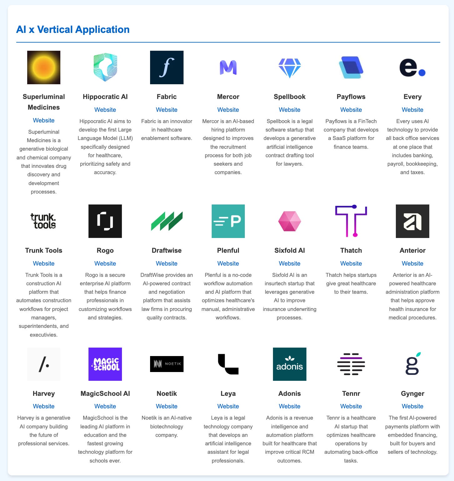 Healthcare x AI (Superluminal Medicines, Hippocratic AI, Fabric, Plenful, Thatch, Anterior, Adonis, Tennr)