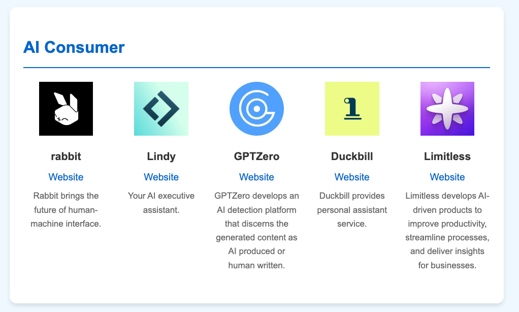 APIs as core infrastructure: What really struck me, looking at the companies in the “AI foundational models and infrastructure” category, is how many of the companies’ APIs are powering both individual consumer apps and acting as core infrastructure within massive organizations. We’ve got ElevenLabs and Mistral AI used for pet projects, also pulling in millions of dollars with enterprise contracts. All of these APIs have lowered the barrier to entry and make shipping anything simple. But while the business model is working, is it long-term sustainable when all you have to do is swap out an API key?