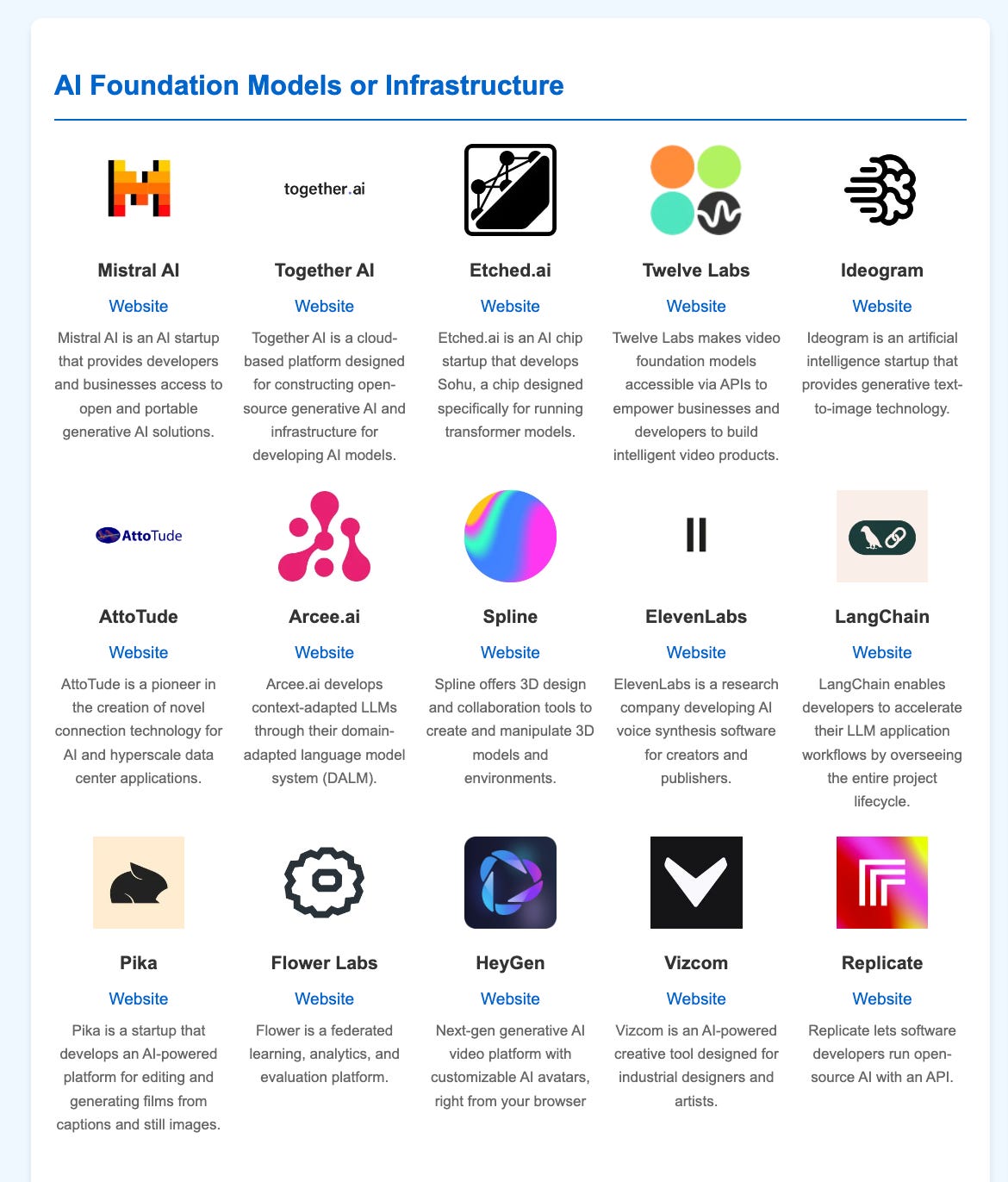 Infrastructure for developing & deploying models (Together AI, LangChain, Replicate)