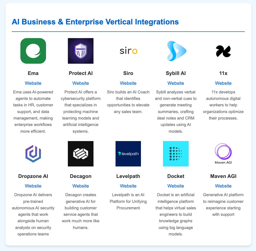 Success in verticalization: Over the past two years, we’ve seen a surge in sector-specific AI across almost every industry. This strategy has been supported by real revenue numbers (e.g., Harvey), and I believe underlines the general trend towards domain expertise in AI. Looking ahead, I imagine we’ll continue to see the fight to be the “go-to AI solution” for any one category. And we’ll see the same dynamic for embedded AI solutions tailored to specific organization functions (e.g. AI tools for Sales organizations)